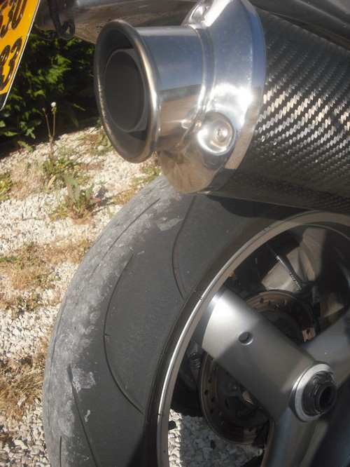 t'étais encore dans le C... de ton père que je frottais déjà mes repose-pieds, petit !!!! si t'avait bien regardé c'est un pneu neuf et ça se rode !!!